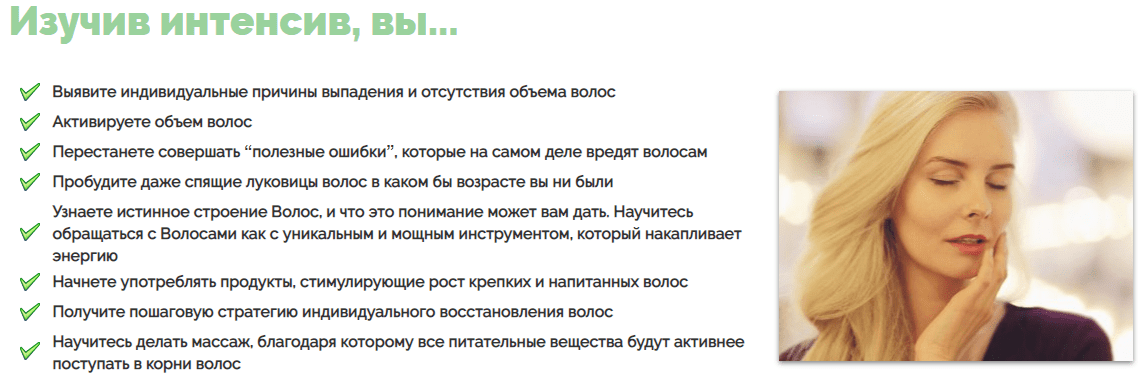 - Вы получите схему, как за 3 месяца, вы решите проблему выпадения волос, которую вы до этого пытались исправить годами и огромными суммами.
