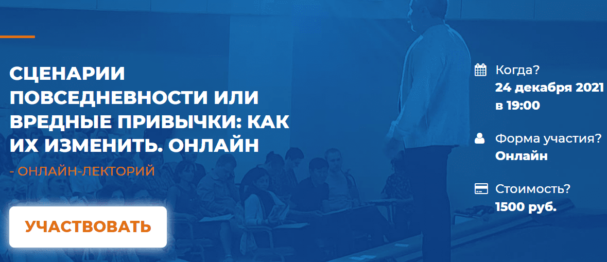 Сценарии повседневности или вредные привычки: как их изменить. ОНЛАЙН - Институт Инновационных Психотехнологий (ИИП)