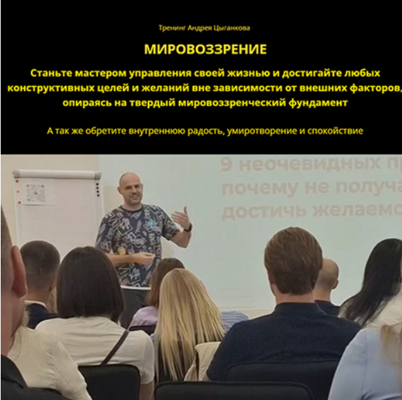 Тренинг Андрея Цыганкова МИРОВОЗЗРЕНИЕСтаньте мастером управления своей жизнью и обретите внутреннюю радость, умиротворение и спокойствие вне зависимости от внешних факторов, опираясь на твердый мировоззренческий фундамент...lp.andreytsygankov.com