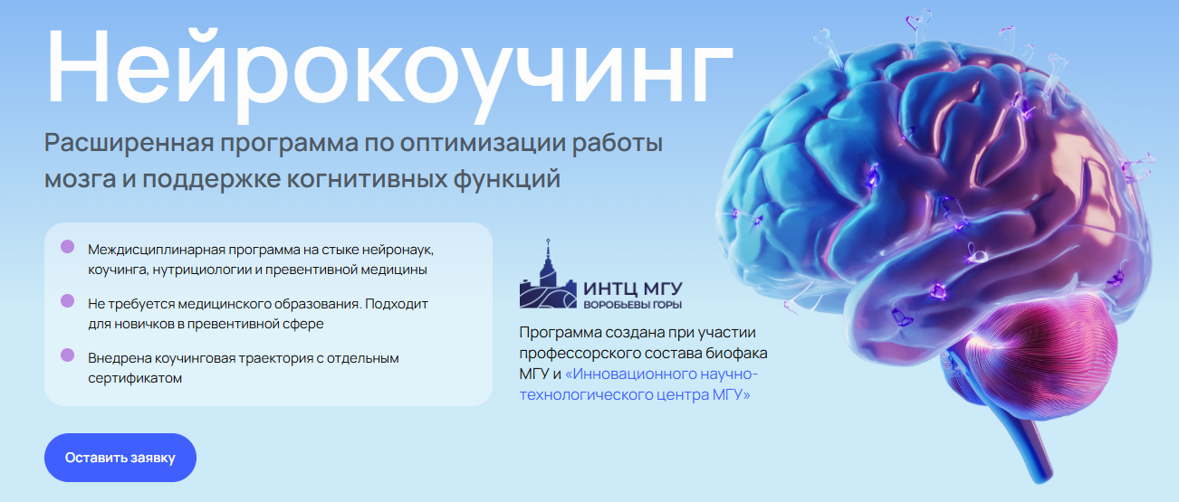 Программа направлена на подготовку специалистов, которые будут помогать людям улучшить процессы восприятия, запоминания и обработки информации с помощью инструментов превентивного управления здоровьем.