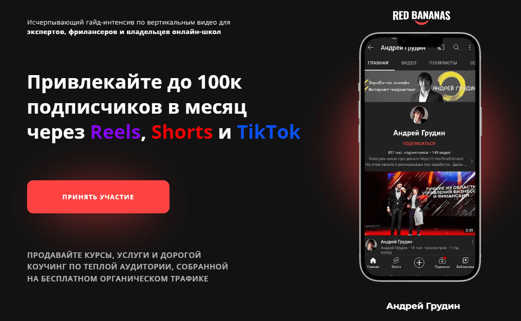 Привлекайте до 100к подписчиков в месяц через Reels, Shorts и TikTokredbananas.pro