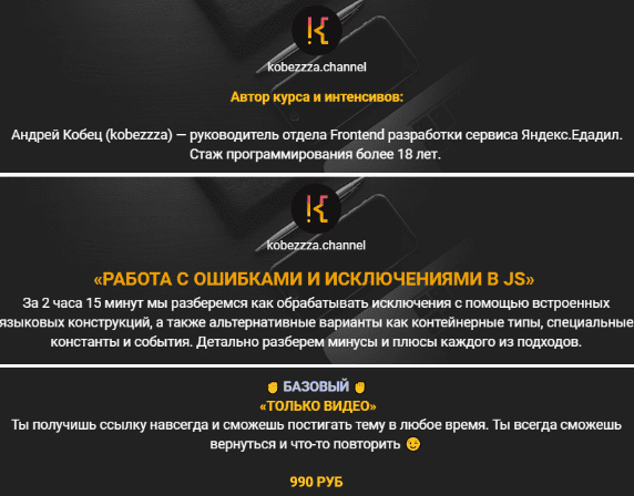 [Андрей Кобец] [kobezzza] Работа с ошибками и исключениями в Java Script (2022)