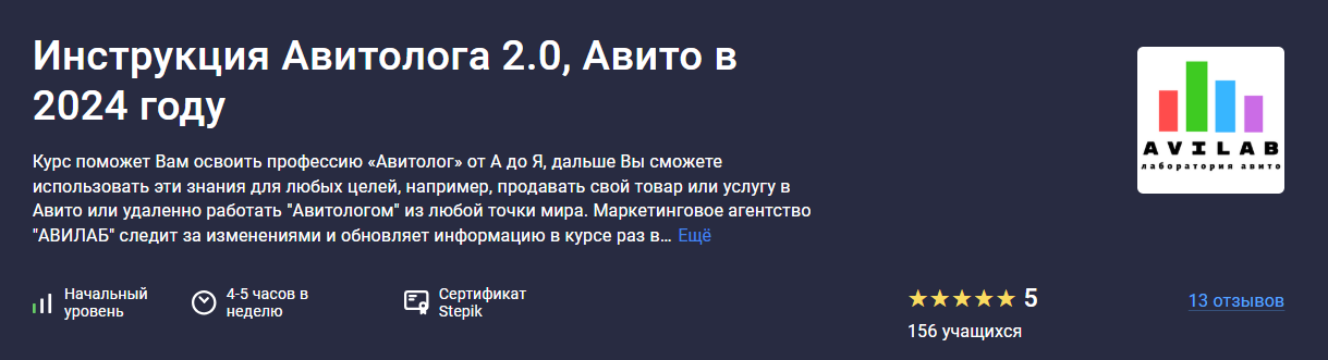 Инструкция Авитолога 2.0, Авито в 2024 году [stepik] [Андрей Лагута]