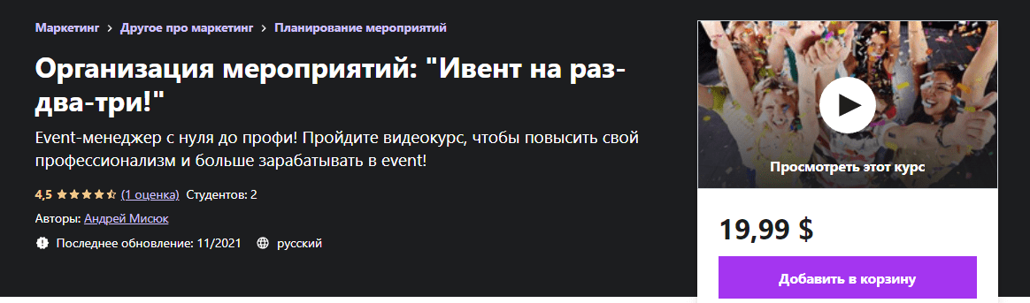 Event-менеджер с нуля до профи! Пройдите видеокурс, чтобы повысить свой профессионализм и больше зарабатывать в event!www.udemy.com