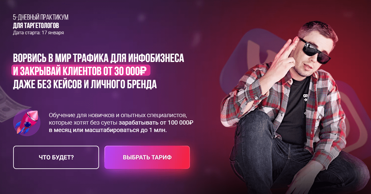 Основной упор идет на таргетологов, которые устали работать на низких чеках и хотят брать проекты от 30 000₽. Но также мы дадим знания и тем, кто хочет масштабировать до 1 млн и узнать новые связки и инструменты.