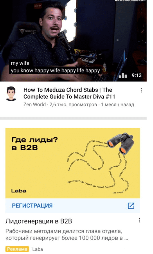 Формат YouTube Discovery настраивается через рекламный кабинет Google и представляет собою баннерные картинки на YouTube c кнопкой перехода на сайт.