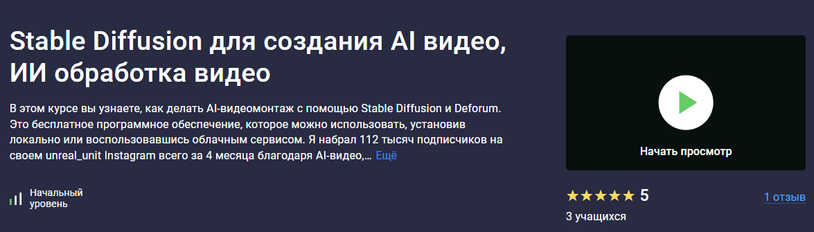 В этом курсе вы узнаете, как делать AI-видеомонтаж с помощью Stable Diffusion и Deforum. Это бесплатное программное обеспечение, которое можно использовать, установив локально или воспользовавшись облачным сервисом. Я набрал 112 тысяч подписчиков на своем unreal_unit всего за 4 месяца благодаря...stepik.org