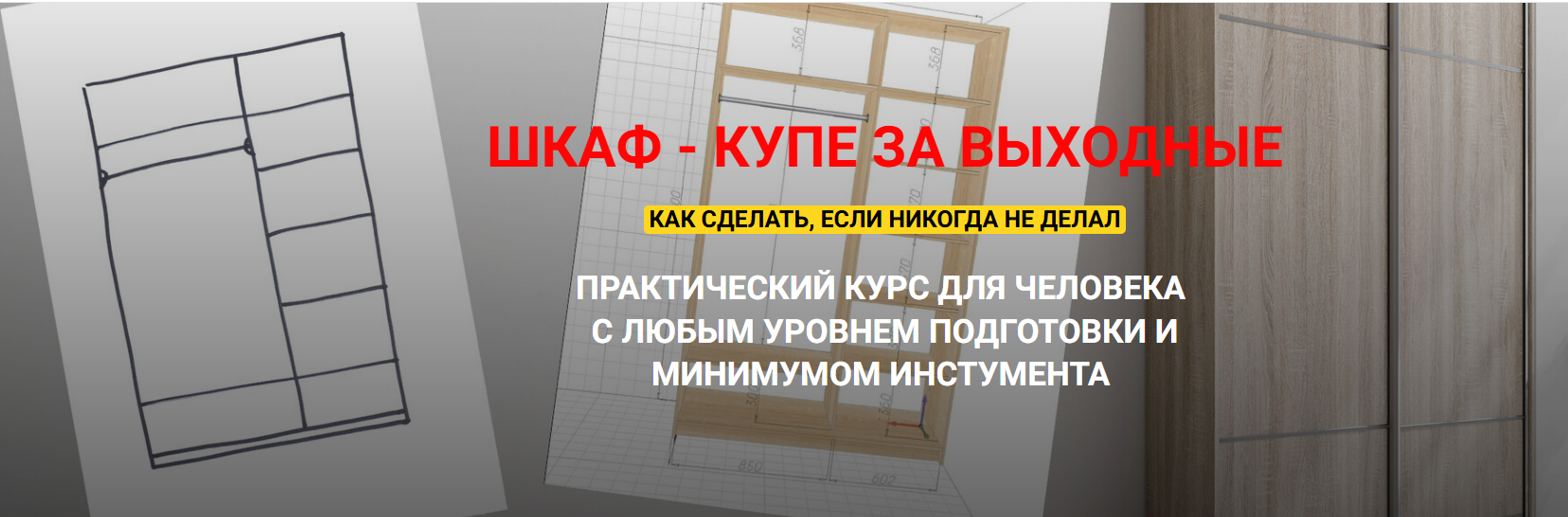 - В этом курсе, совершенно подробнейшим образом, шаг за шагом я проведу вас через все сложности от идеи до финальной сборки двухдверного шкафа-купе.