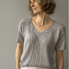 Топ Sylvan Tee вяжется сверху вниз полностью без швов. Конструкция модифицированного спущенного плеча и европейского плечевого шва (он же носит название японское плечо), который отходит от естественной линии плеча, обеспечивают наилучшую посадку. Топ вяжется как поворотными рядами, так и по кругу.