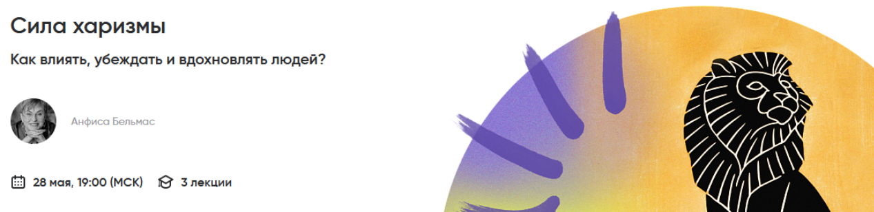 Как превратить каждое взаимодействие с людьми в успех и стать человеком, к которому все тянутся и прислушиваются? С помощью харизмы! Этот навык (да-да, именно навык) может развить каждый, нужны лишь правильные инструменты. В этом вам точно сможет помочь наш цикл лекций.