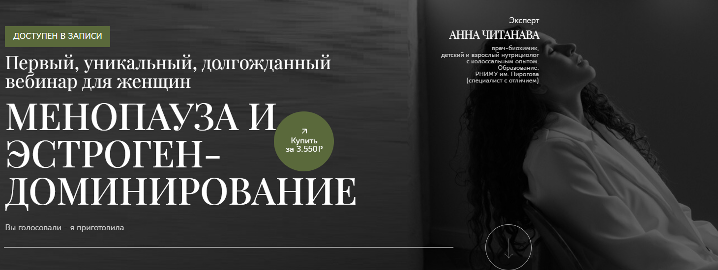 Менопауза * Эстроген доминирование * Первый, уникальный, долгожданный вебинар для женщин * WhatsApp: +7 965 769 91 79 (Напишите в чат) * Врач нутрициолог Анна Читанаваdrcheetanava.com
