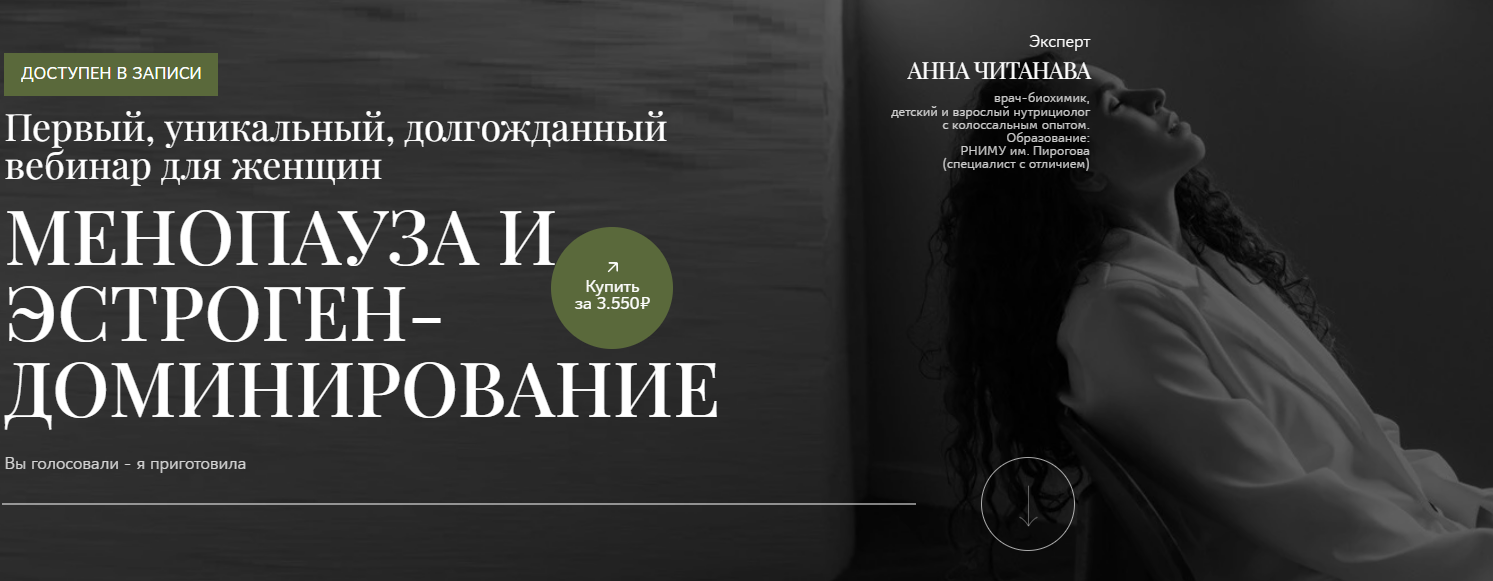 Менопауза * Эстроген доминирование * Первый, уникальный, долгожданный вебинар для женщин * WhatsApp: +7 965 769 91 79 (Напишите в чат) * Врач нутрициолог Анна Читанаваdrcheetanava.com