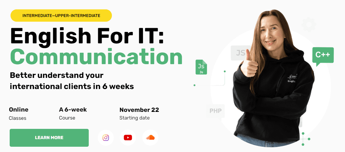 Enhance your communication skills in 7 weeks. Master writing emails, running meetings, making small talk, and presenting projects. Suitable for Intermediate to Upper-Intermediate learners.english4it.online