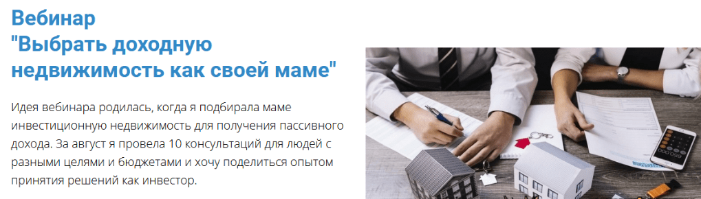 Идея вебинара родилась пару недель назад, когда я подбирала маме инвестиционную недвижимость для получения пассивного дохода. За август я провела 10 консультаций для людей с разными целями и бюджетами и хочу поделиться опытом принятия решений как инвестор.