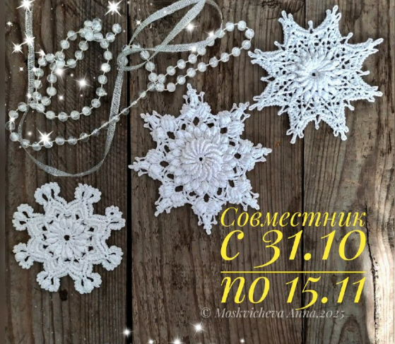 В совместнике будут выложены pdf-файлы с МК каждой снежинки и видео каждого ряда. Материалы МК по окончании совместника удаляться не будут,группа для участников останется бессрочной!