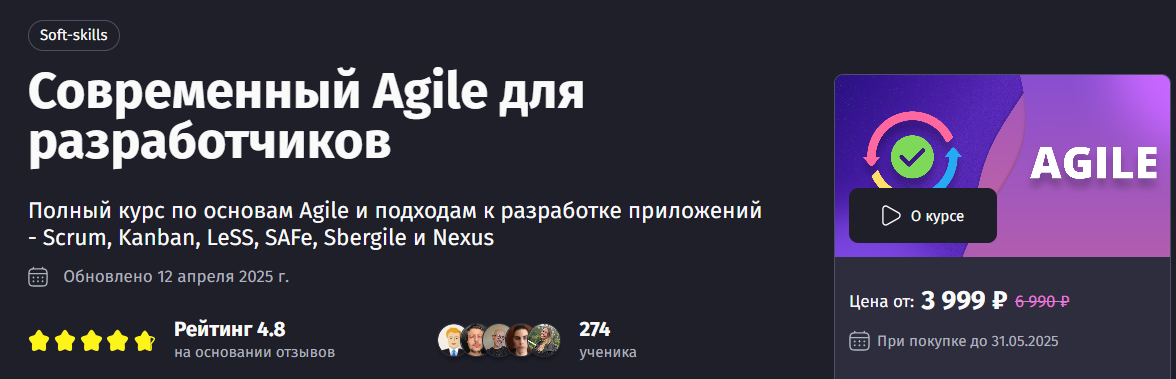 Полный курс по основам Agile и подходам к разработке приложений - Scrum, Kanban, LeSS, SAFe, Sbergile и Nexuspurpleschool.ru
