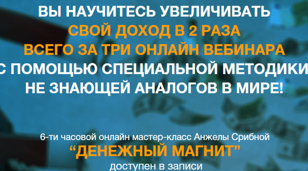 ВЫ НАУЧИТЕСЬ УВЕЛИЧИВАТЬ СВОЙ ДОХОД В 2 РАЗА ВСЕГО ЗА 3 ВЕБИНАРА С ПОМОЩЬЮ СПЕЦИАЛЬНОЙ МЕТОДИКИ, НЕ ЗНАЮЩЕЙ АНАЛОГОВ В МИРЕ!!