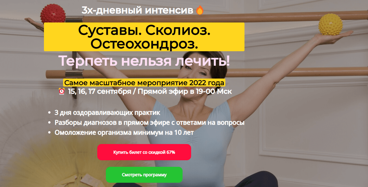 - сделаете простые практики, которые снимут боль и симптомы сколиоза прямо на мастер-классе