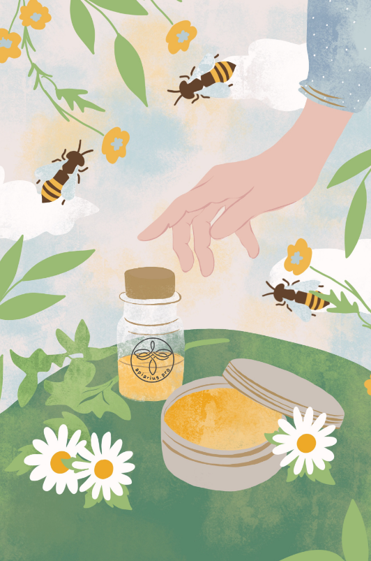 - Очищающие и тонизирующие средства (лосьоны, тоники, умывалки, скрабы) для лица на основе трав и мёда
