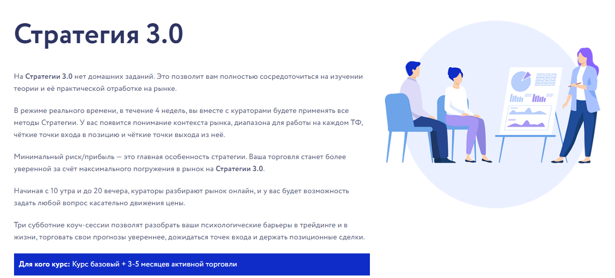 На Стратегии 3.0 нет домашних заданий. Это позволит вам полностью сосредоточиться на изучении теории и её практической отработке на рынке.