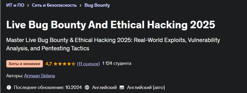 [Armaan Sidana] [Udemy] [ENGЖивой баг-баунти и этический хакинг 2025 (2024)