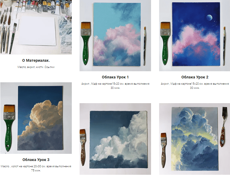 Поэтапно от простого к сложному научитесь писать акрилом и маслом облака.
