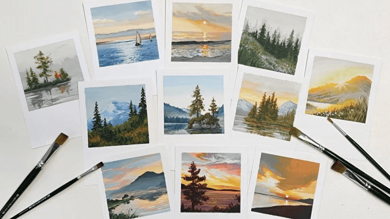 Поэтапно научитесь писать пейзажи акрилом. Простые этюды. Напишите 11 работ.