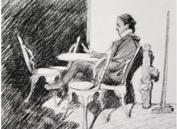 Научитесь использовать глубокий тон для создания контрастного рисунка углём, примените знания о балансе и ритме темных и светлых форм для создания эффектной композиции и нарисуете человека в кафе.