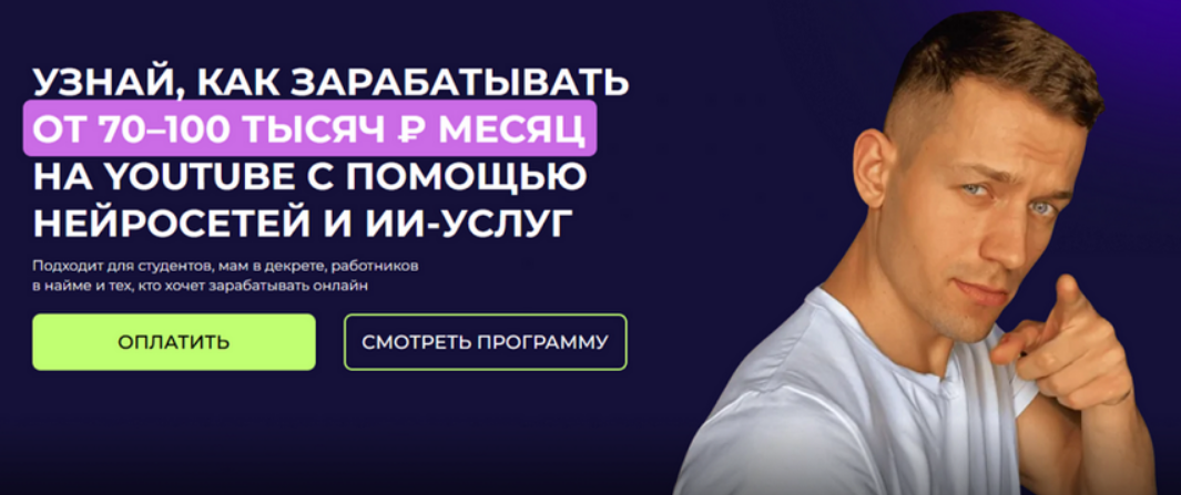 - Разобраться, как зарабатывать на YouTube с помощью нейросетей или предоставлять ИИ-услуги