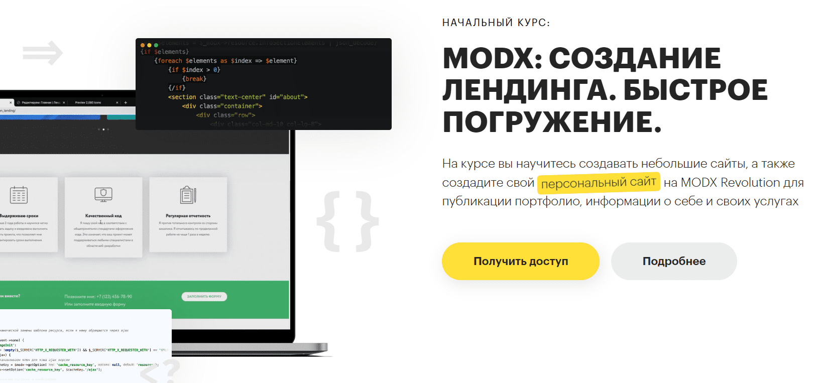 Курс поможет быстро погрузиться в практику создания сайтов на MODX Revolution на примере одностраничного сайта, который вы сможете в дальнейшем использовать в своих целях.