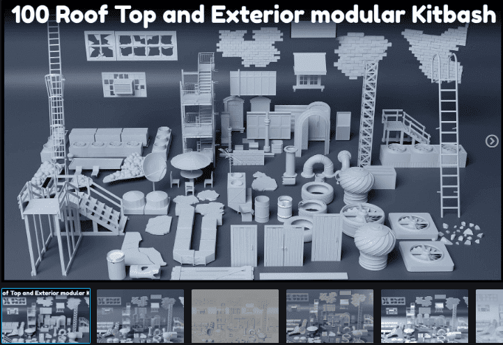 Top и Exterior Modular Kitbash, доступны в форматах FBX, OBJ, stl и собственных файлах blend.