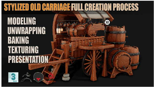 [artstation] Полный процесс создания стилизованной старой кареты + Полный процесс создания стилизованной бочки (2022)
