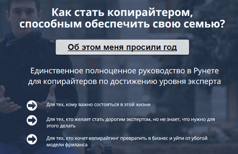 — Вы разбираете конкретные примеры моих продающих текстов, вместе мы их анализируем, вы обучаетесь на практике, а не на теоретических рекомендациях