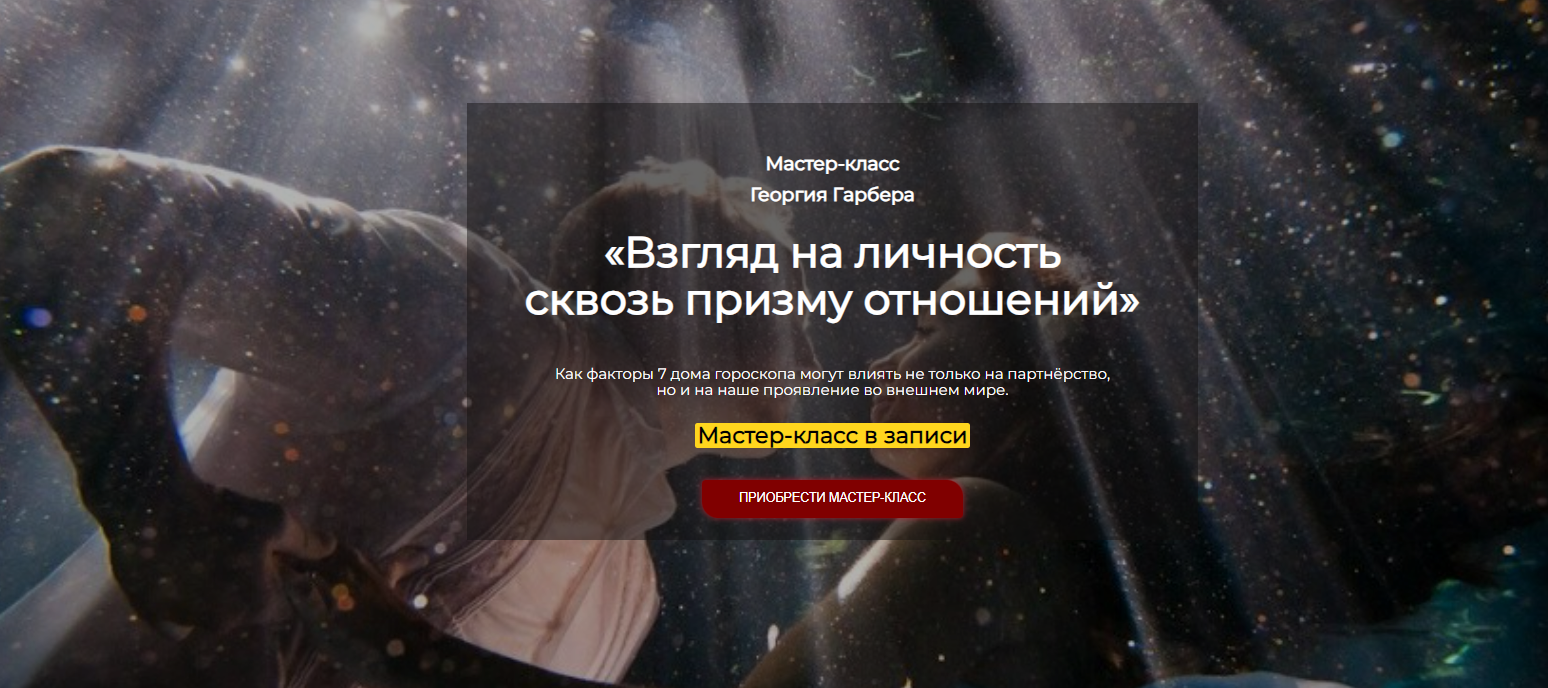 В ходе мастер-класса мы рассмотрим, как факторы 7 дома гороскопа могут влиять не только на партнёрство, но и на наше самопроявление во внешнем мире, т.е. добавлять важные штрихи к портрету личности; показывать реакцию внешнего мира, партнёров на нашу индивидуальность, что может помогать в работе над собой, в коррекции отношений с партнёрами и многое другое.