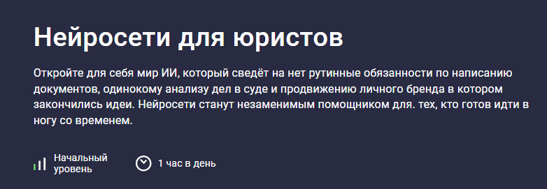 Тогда наш курс "Нейросети для юристов" - именно то, что вам нужно!