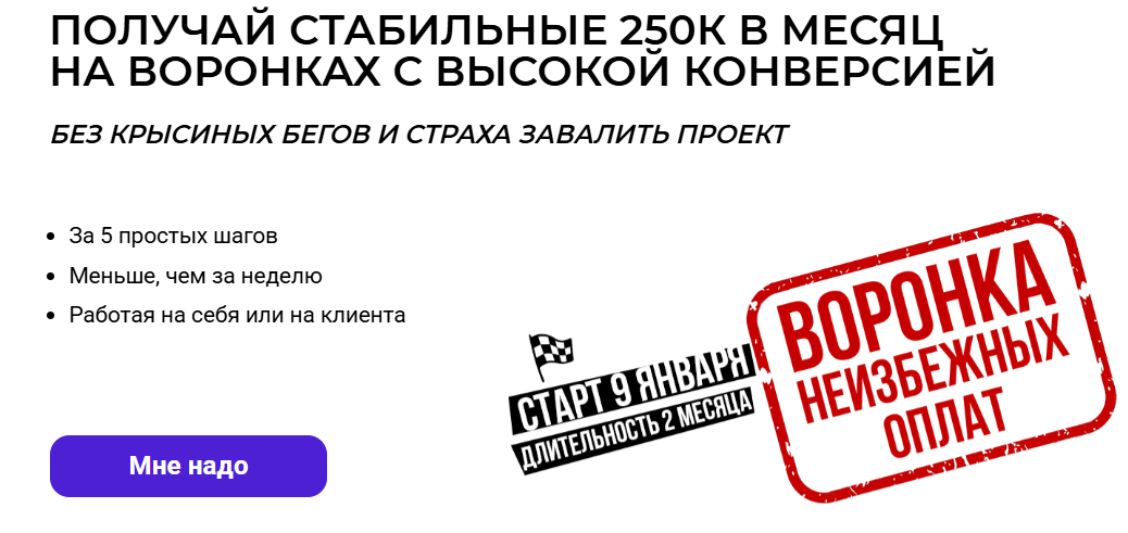 — позволит соло собирать 2-3 воронки в месяц за высокий чек, и работать с заказчиком в долгую.