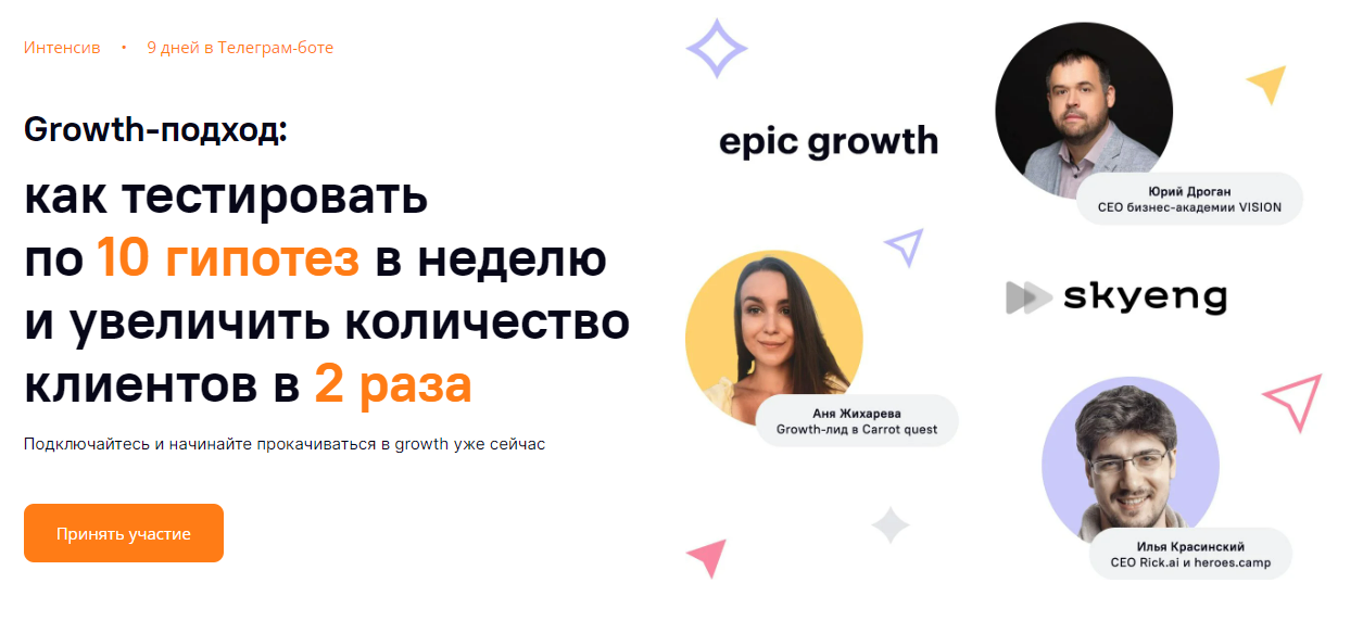 Гриша Орлов, Head of Growth Carrot quest, помогал выстраивать процессы в 20 компаниях: Яндекс.Практикум, IT-Agency, Алгоритмика, Уроки Легенд и др.