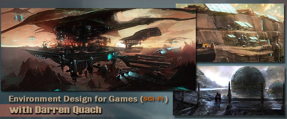 Этот урок будет посвящен научно-фантастическим средам для игр. Даррен научит основам, необходимым для создания сред мирового уровня, и ответит на такие вопросы, как: Какие отдельные компоненты необходимы, чтобы организовать успешный дизайн среды? Или какие архитектурные идеи и концепции должны быть использованы для создания убедительных сооружений? Будут освещены: макет, перспектива и композиция; освещение и теория восприятия цвета; а также многие другие советы, приёмы и техники, чтобы завершить ваше произведение.