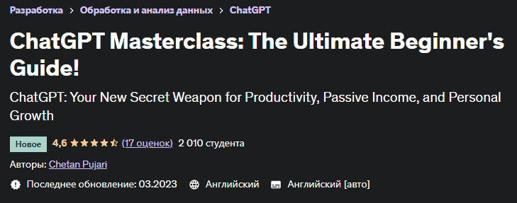 [Четан Пуджари] [Udemy] Мастер-класс по ChatGPT: полное руководство для начинающих! (2023)