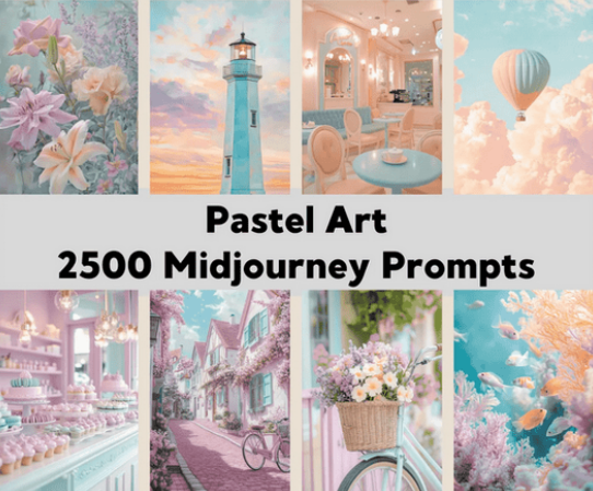 Откройте для себя мир нежного очарования и ностальгии с помощью набора «2500 пастельных подсказок в Midjourney»!