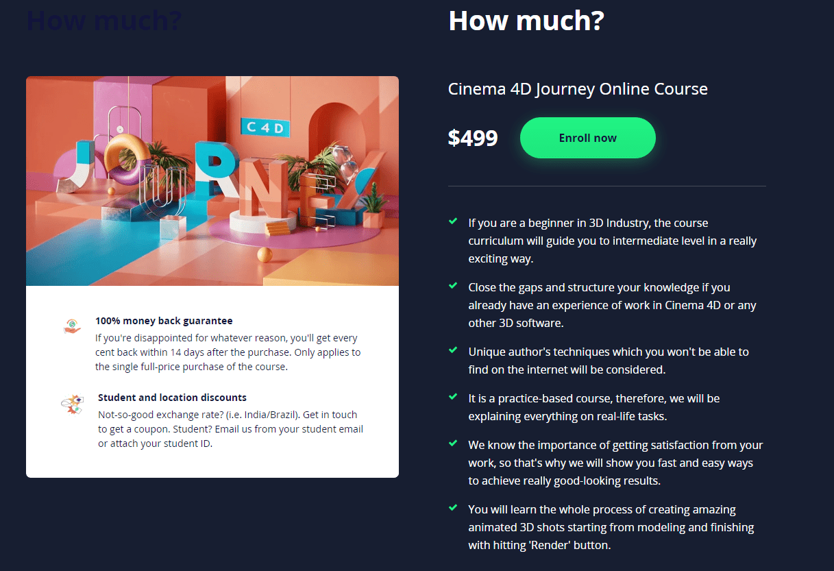 Начнем с Синема 4Д. Этот базовый курс охватывает основные аспекты Синема 4Д не вдаваясь в слишком много деталей. Этот курс предоставит вам базовые знания об основах 3D-мира, и вы сможете понять, как справляться с различными задачами Cinema 4D без поиска тонны учебников.