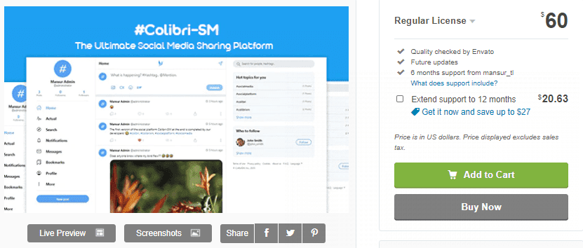 All relevant information about updates and other events, we will publish on this Telegram channel: https://t.me/colibriplus With ColibriSM script you can create a powerful and unique social ne...codecanyon.net