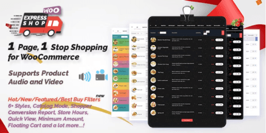 Express Shop отображает все продукты WooCommerce в виде одностраничного магазина в великолепных стилях с аудио и видео продукта. Покажите свою таблицу продуктов WooCommerce для быстрой покупки и легкого массового заказа. Более быстрые покупки для онлайн-заказа в ресторане, меню еды, продуктовых магазинов, оптового магазина, музыкальных или видеомагазинов и т. д.