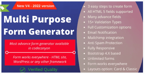 Multi-Purpose Form Generator v4.8 Nulled - многоцелевой генератор форм, который предоставляет простой интерфейс перетаскивания для создания как простых, так и сложных форм за считанные секунды.