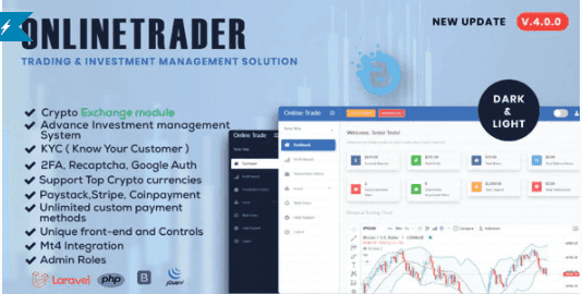 OnlineTrader v4.0.0 Nulled - это ваше решение № 1 для создания инвестиционной платформы. Инвестиции в Forex, акции и криптовалюту и мониторинг теперь упрощены. OnlineTrader позволяет вам запустить собственную систему онлайн-инвестиций за считанные минуты. Это полностью адаптивная и динамичная инвестиционная платформа, построенная на Laravel Framework.