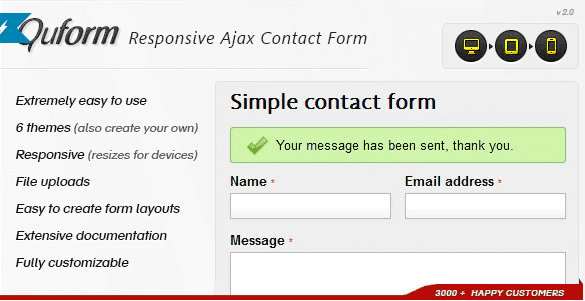 Quform - это мощная адаптивная контактная форма ajax, которую вы можете легко встроить в любую веб-страницу за считанные минуты. Если вам нужна простая контактная форма для размещения на вашем веб-сайте, Quform наверняка удовлетворит ваши требования. Он делает все, не перезагружая страницу, что обеспечивает гладкий пользовательский интерфейс, который обязательно произведет положительное впечатление, когда ваши посетители свяжутся с вами.