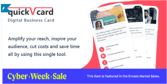 QuickVCard v1.6 - скрипт SaaS для создания бесконтактных цифровых визиток всего за 5 минут. С помощью этого конструктора цифровых визиток с QR-кодом клиенты могут сканировать QR-код и проверять вашу визитную карточку на своих телефонах.
