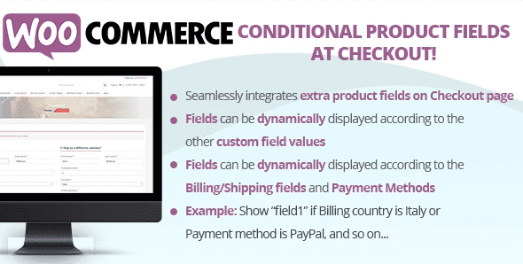Плагин условных полей товаров WooCommerce при оформлении заказа позволяет отображать дополнительные поля продукта при оформлении заказа! Поля могут отображаться динамически в соответствии с логическими правилами ... и все это делается с помощью приятного визуального редактора!
