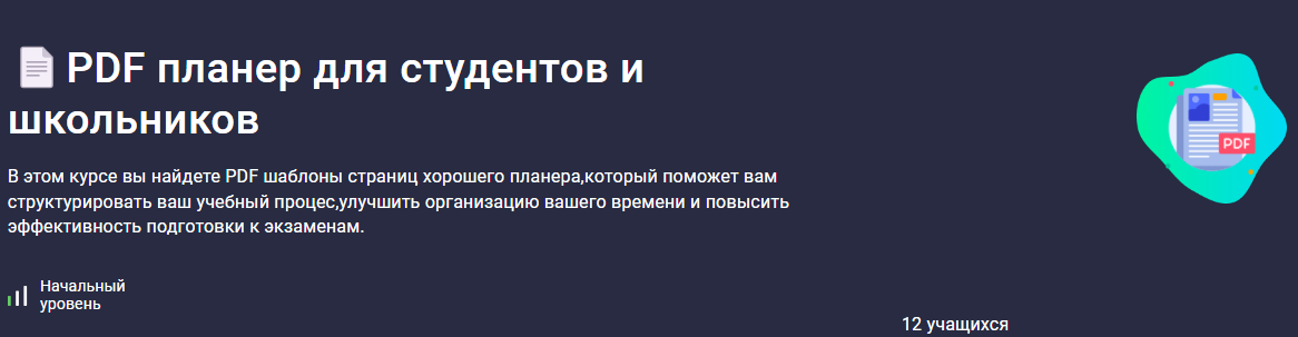 В этом курсе вы найдете PDF шаблоны страниц хорошего планера,который поможет вам структурировать ваш учебный процес,улучшить организацию вашего времени и повысить эффективность подготовки к экзаменам.