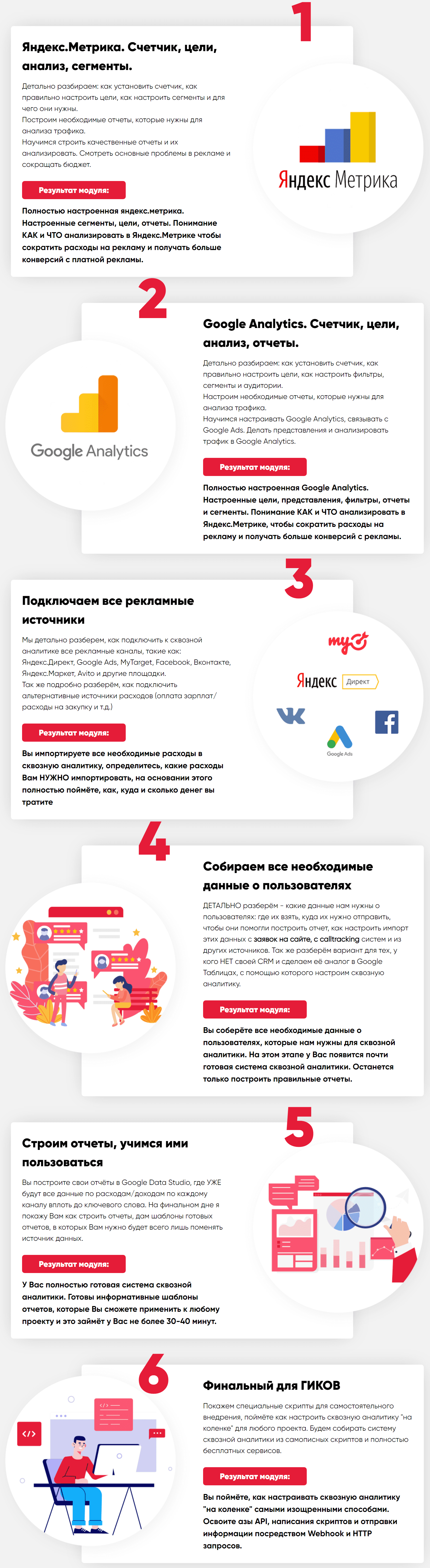 6) Вы сами научитесь настраивать сквозную аналитику под нашим руководством, следуя пошаговым инструкциям.